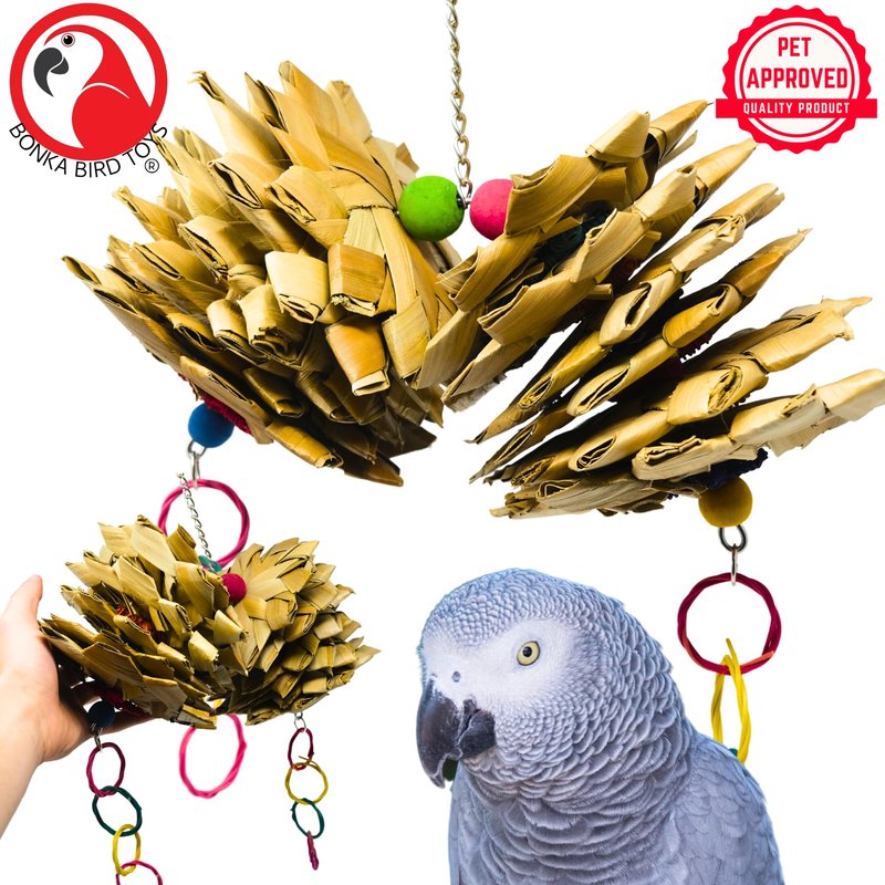 Bonka Bird Toys 2650 Palm Star Delight Natural Chew Shred Parrot Cage Toy, Amazon, African Grey, Conure, and Similar Breed Sizes