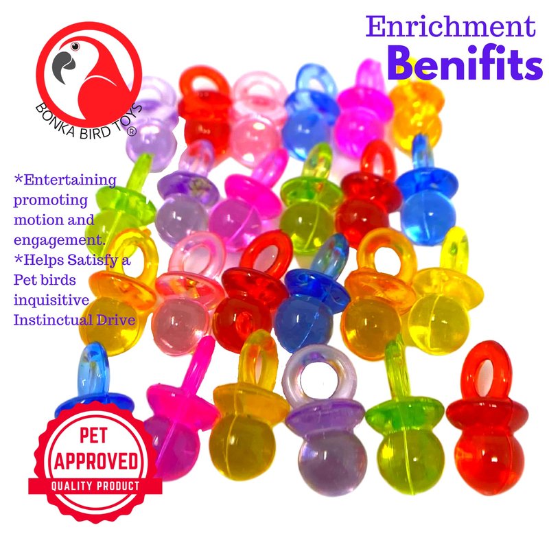 Bonka Bird Toys 2949 Pk24 3/4" Color Tiny Pacifiers Parrot Bird Toys, Conure, Quaker, Ringneck, and Similar
