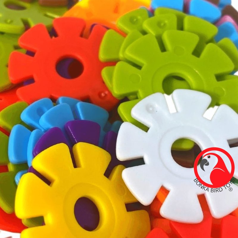 - The 3839 comes with fifty round snowflake foot-talon bird toys to a pack and is ready to be played with. Each of the snowflakes has many pedals surrounding its center.
