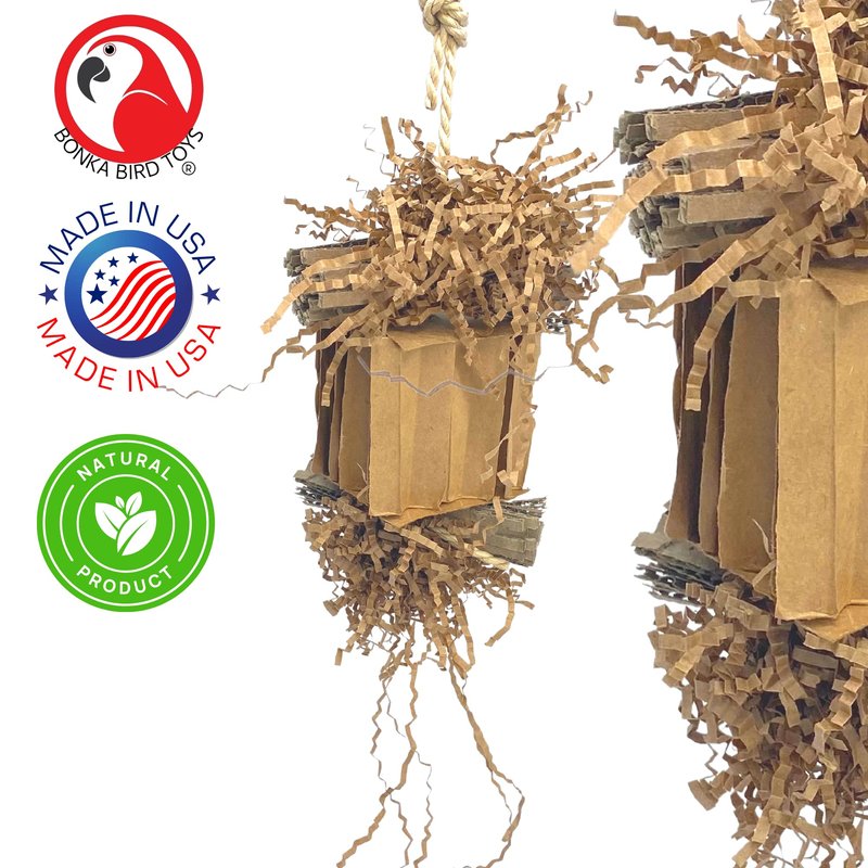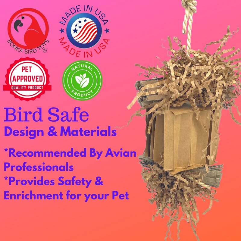 Bonka Bird Toys 3857 Medium Shreddy Eddy Foraging Shred Small Medium Bird Toy Cardboard Waffle Crinkly Paper Conures Parakeets African Greys and Other Similar Birds