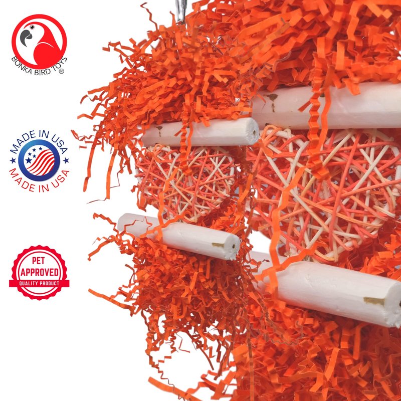 Bonka Bird Toys 3885 Orange Heart Log 10" High by 5" Wide Medium ParrotForaging Chew Cage Toy, Conures, Ringneck, Quakers, and Similar