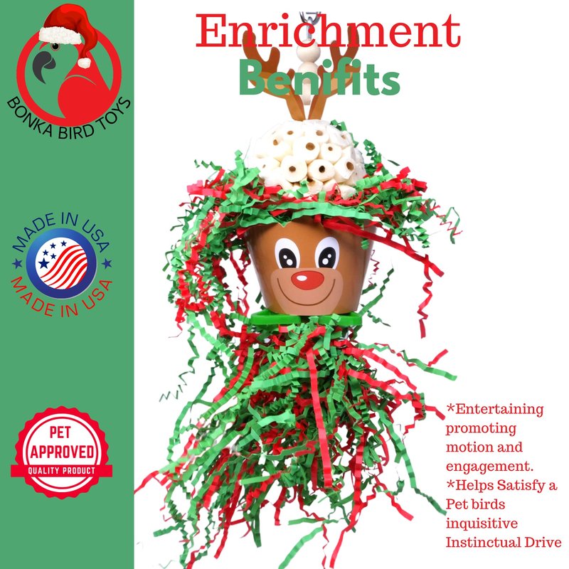 Bonka Bird Toys Christmas Elf Santa Snowman Reindeer Natural Sola Chew Forage Small Medium Bird Toy Cockatiel Parakeet Conures and Other Similar Birds (2437 Reindeer)