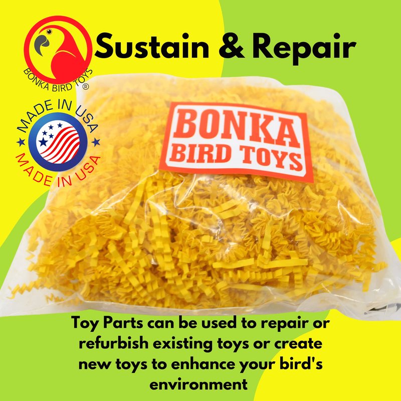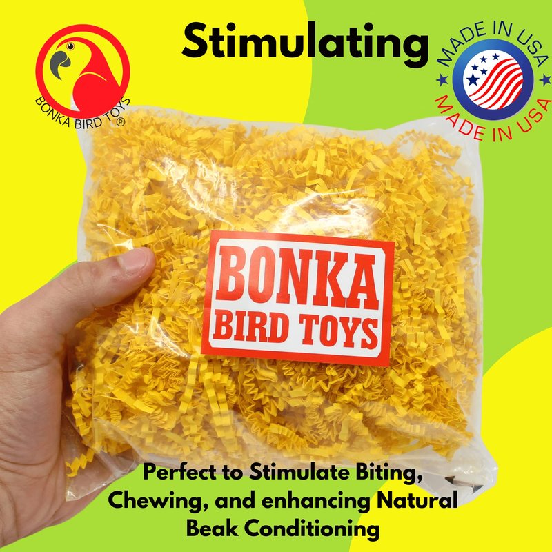 Bonka Bird Toys Colored Crinkle Shred Paper Chew Forage Nesting Natural Multi-Use Craft Part Projects Cockatiels Parakeets Conures Amazons and Other Similar Birds (Yellow)