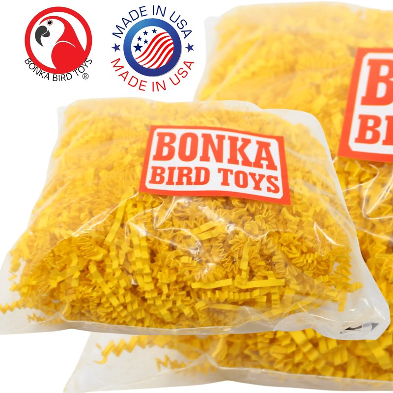 - The Colored Crinkle Shred Paper from Bonka Bird Toys really gets the party started for your birds; it is a versatile shredding material that your feathered friend will adore.