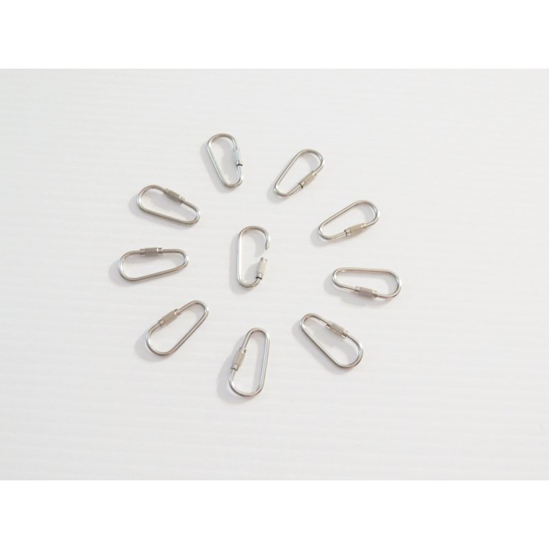 12 Pear Links Nickel Plates Small: These Baby kinks as we like to call them are great to use on small toys. They are approx 1 1/8" long. They are nickle plated making them safe to use for bird toys. Just wash and reuse them over and over again. Just as with any metal, make sure to dry them well so they do not rust. If you need larger sizes we have them as well. We also carry stainless steel pear links and C-Clamps in both nickle plated and stainless steel.