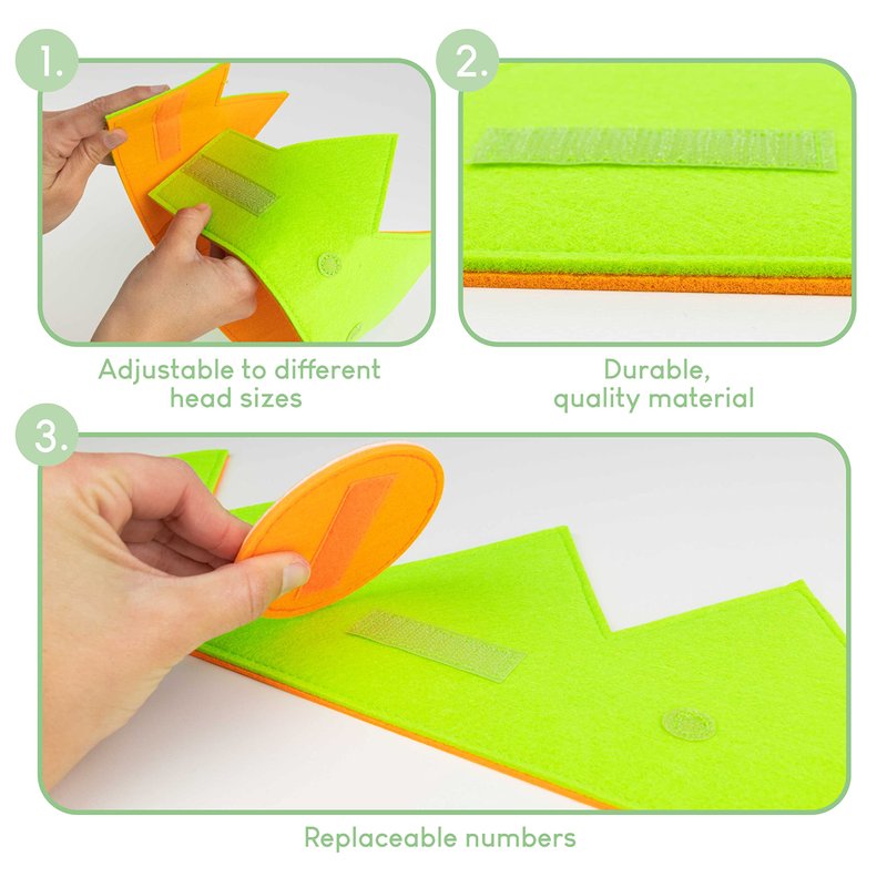 - π DINOSAUR BIRTHDAY CROWN π Dinosaur crown with green front and orange back. The birthday hat comes with interchangeable numbers, making it ideal for boys and girls to celebrate their birthday in the most original way possible. They will feel like queens and kings on their most special day. 1st birthday gifts boy and girls crowns