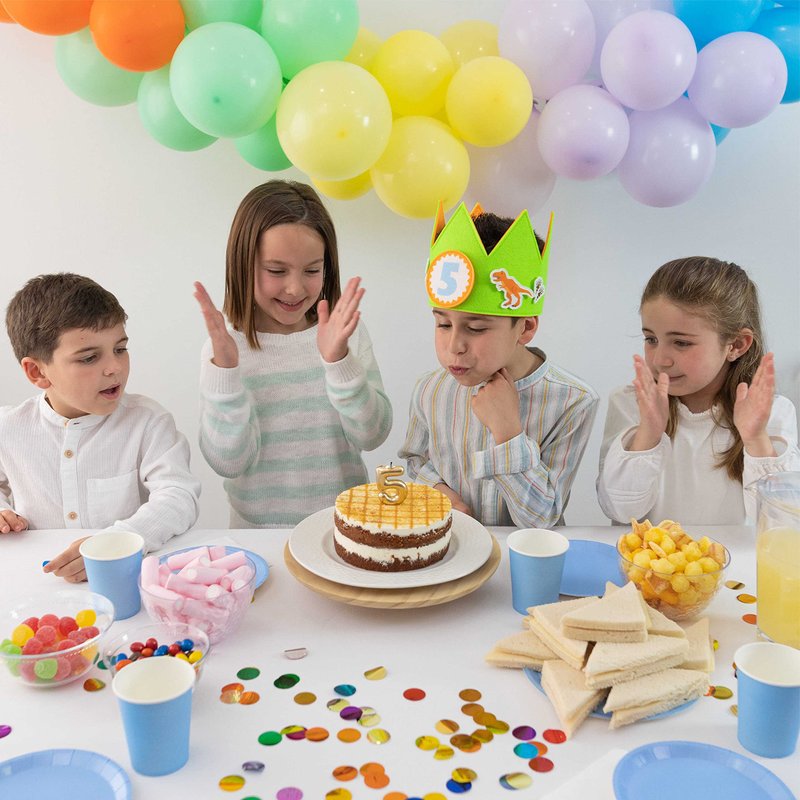 - π¦ QUALITY MATERIAL AND GOOD FINISH π¦ This green party hats for birthdays are made of high quality felt that is double layered, with a total thickness of 4 mm. It is very durable and will last for many kids parties and different events. The crown features precise stitching making it look very pretty. Ideal for dinosaur birthday decorations for boys and girls, baby toys and gifts