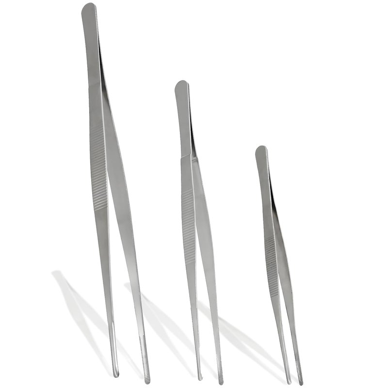 Package: 3 x Stainless Steel Tweezers (8" 10" 12")