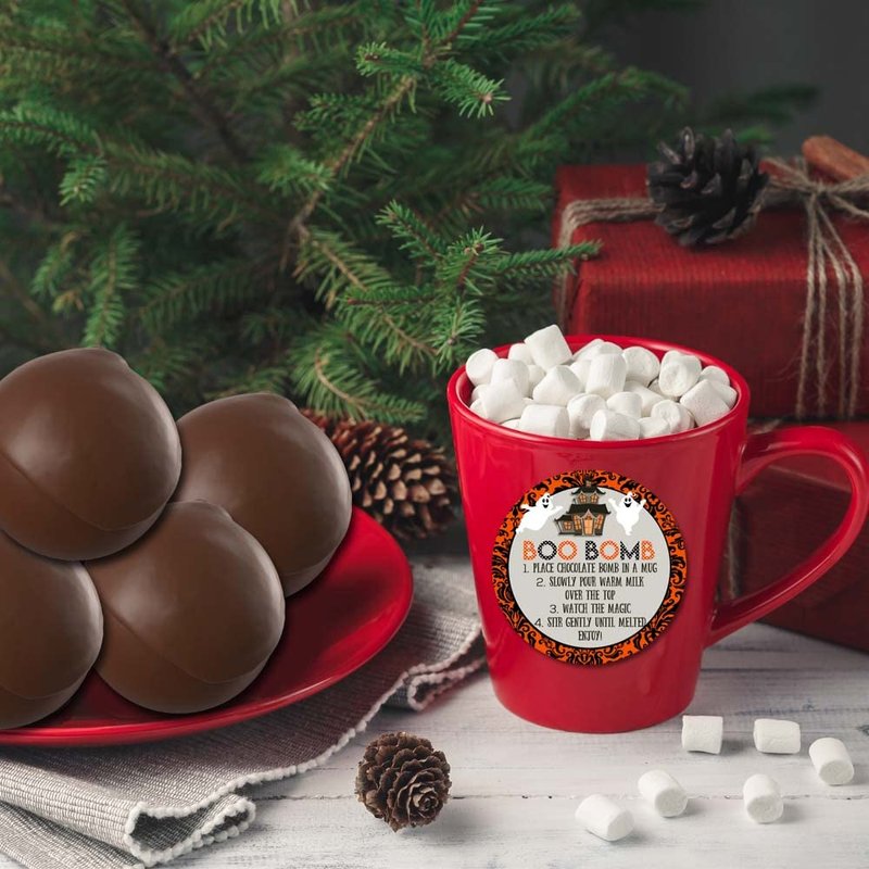 - Cocoa Bomb Overload: Hot cocoa bombs are all the rage this year! Giving some out as gifts and want your packaging to stand out? Designed by a talented mom, these fun stickers feature Halloween ghosts and haunted house, plus all the detailed cocoa bomb instructions to fit perfectly on a package. These are great for making your hot chocolate bomb gift packs extra special for your friends & loved ones! Amanda Creation. Original design by Amanda Creation.