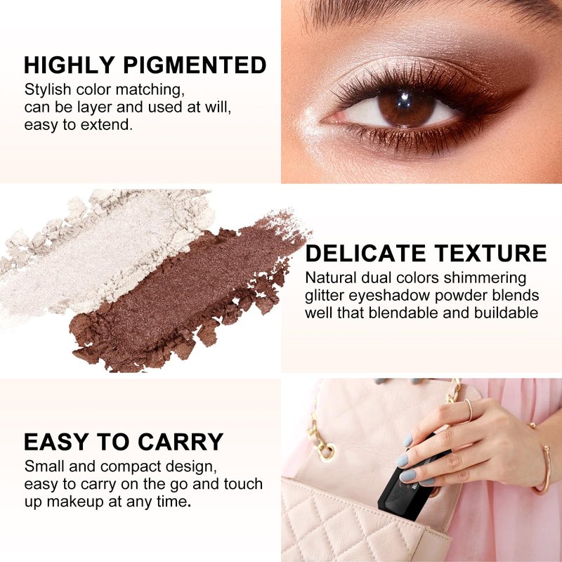 Boobeen 2 Color Eye Shadow, Portable Dual-Color Glitter Eyeshadow Palette Highly Pigmented Powder Eyeshadow Waterproof and Smooth Texture, Long Lasting For Eye Makeup (1#)
