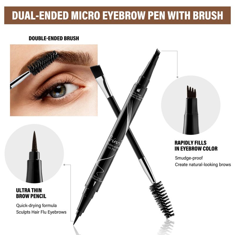 - Double-Ended Eye Brow Pen: 4-fork tip accurately fills in sparse areas of the brow in seconds, micro eyebrow pencil sculpts details for a clear depiction of a naturally fuller brow. Shape with the spoolie brush and blend with the brow brush for everyday use