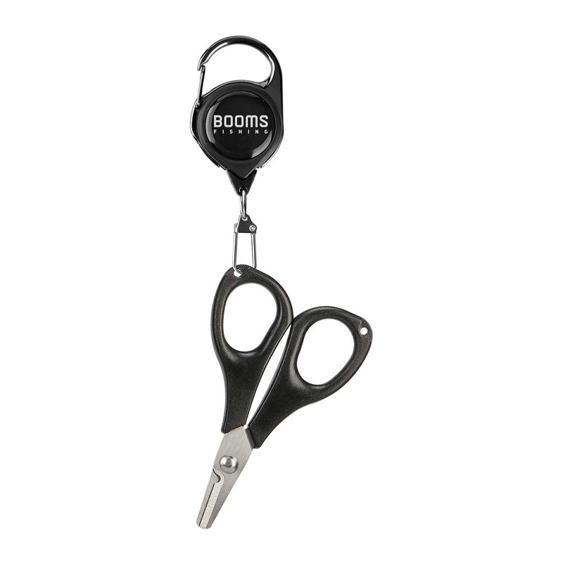 Booms Fishing S01 Fishing Scissors for Braided Line, Fishing Line Cutter Saltwater and Freshwater, Fishing Serrated Shears with Retractor, 3.9” Black