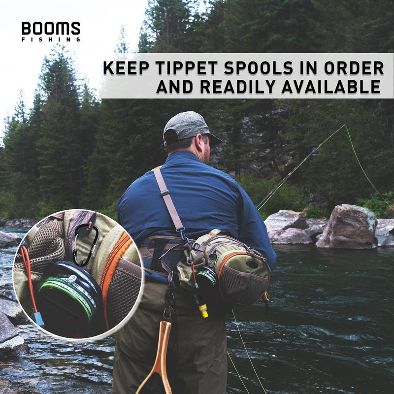 With our simple yet convenient gadget, you can have up to 5 spools tippet organized on the bar fixed to any D-ring or zippers on your vest,
