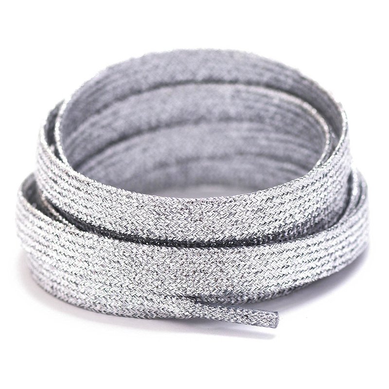 Booyckiy Flat Colorful Shiny Glitter Shoelaces, 2/5" Rainbow Shoe Laces for Sneakers Silver 47inch (120cm)