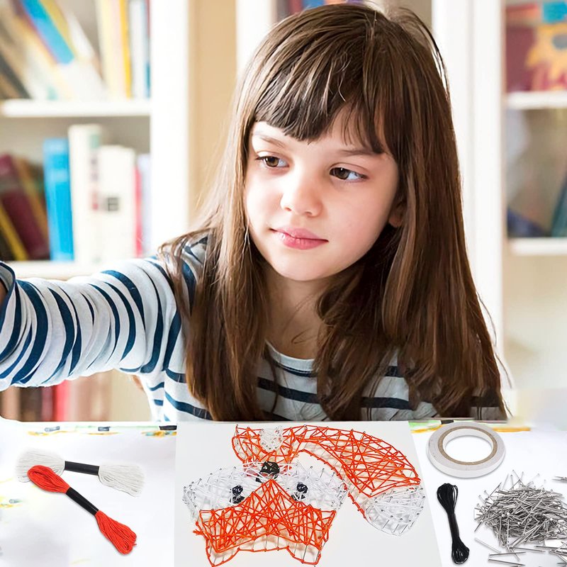 - String Art Kits for Kids 9-12: The design looks complicated, but just follow the instructions, push the pins into the pre-patterned foam base and string them with colorful strings. This string for crafts is a great way to stimulate creativity for children