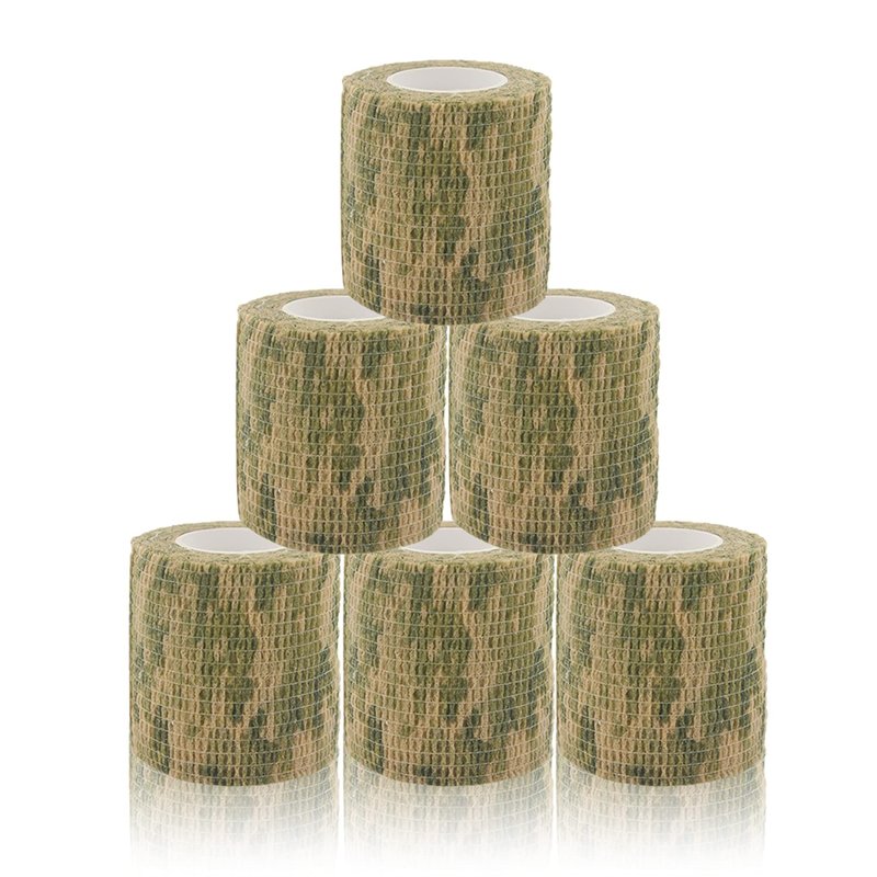 BOROLA Self-Adhesive Protective Camouflage Tape Cling Scope Wrap Camo Stretch Bandage for Camping,Flashlights,Bicycle,Range Finder Camera etc.(6Pcs, Woodland Camo