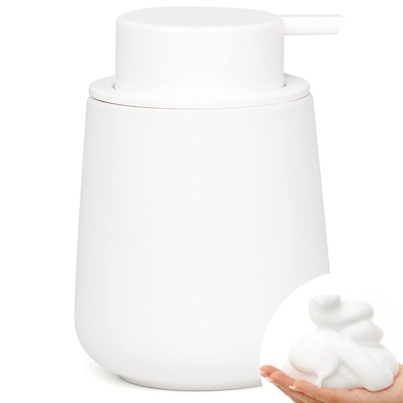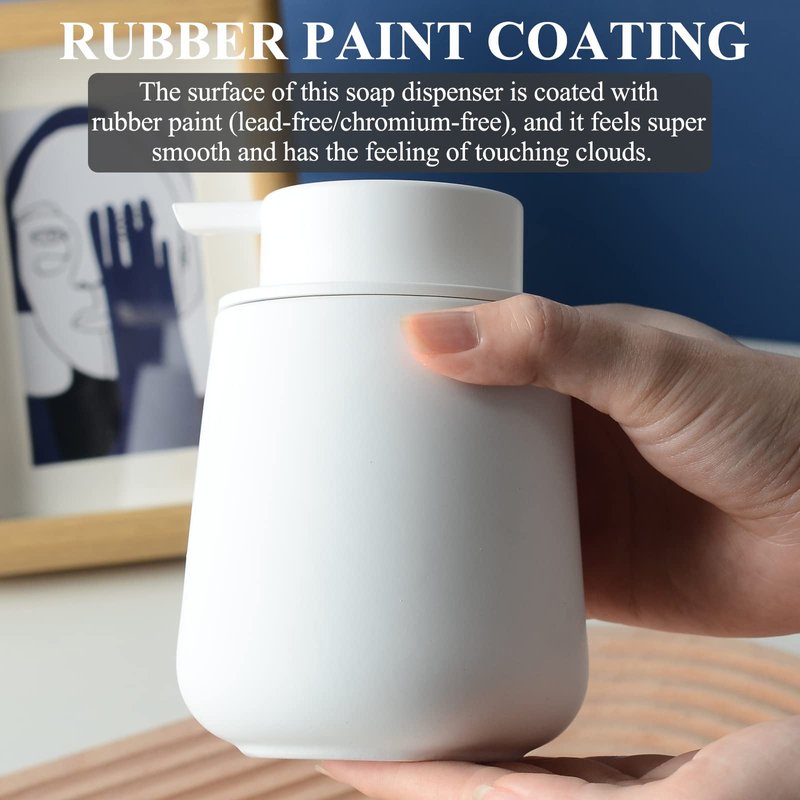 BosilunLife Foam Hand Soap Dispenser - 12 oz Bathroom Lotion Hand Pump Dispenser White Foaming Soap Dispenser Ceramic Dish Liquid Dispenser for Kitchen Hand Wash Dispenser (Rubber Paint)
