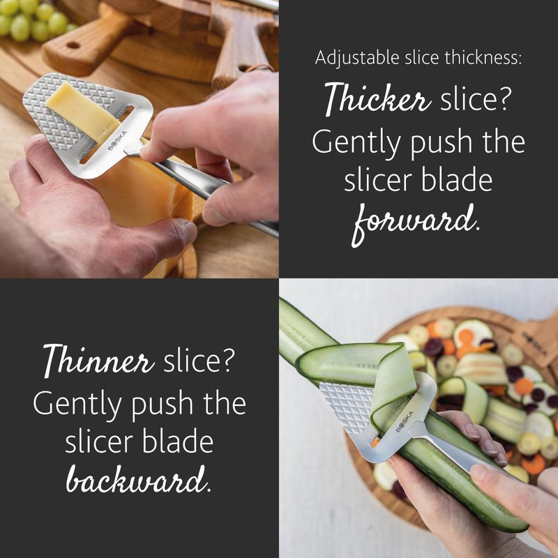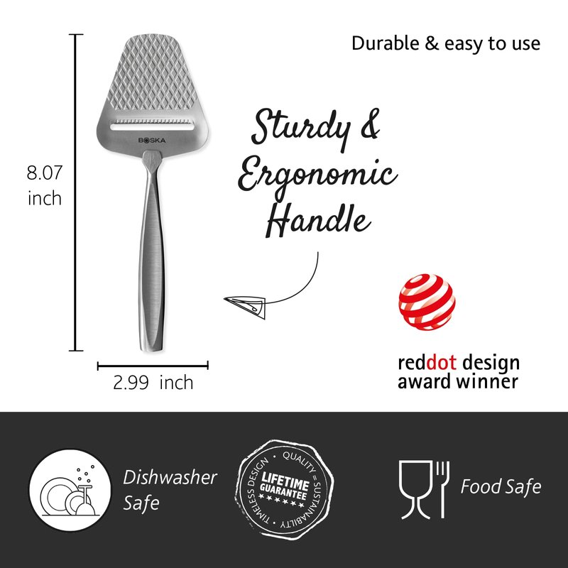 BOSKA Stainless Steel Cheese Slicer - For All Types of Cheese - Multi-Functional Cheese Slicer - Handheld Slicer - Silver Non-Stick - Dishwasher Safe - For Kitchen Cooking