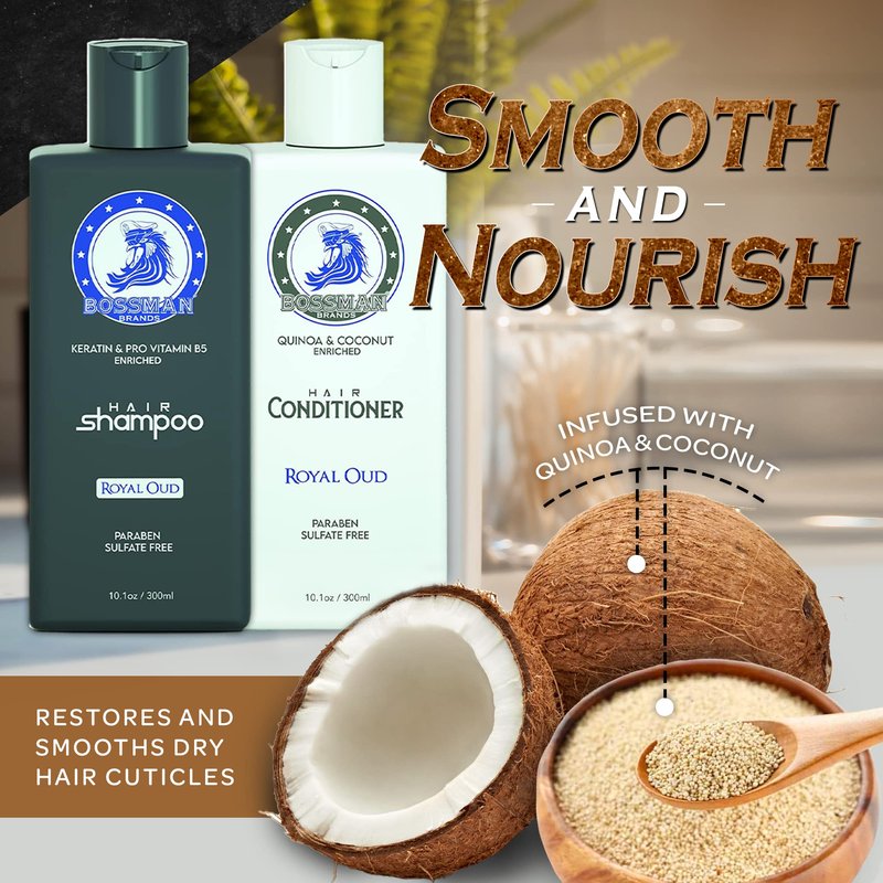 Bossman Hair Shampoo and Conditioner Combo - Hydrating, Strengthening, and Soothing Formula for Men's Hair - Paraben Free & Sulfate Free (Royal Oud)