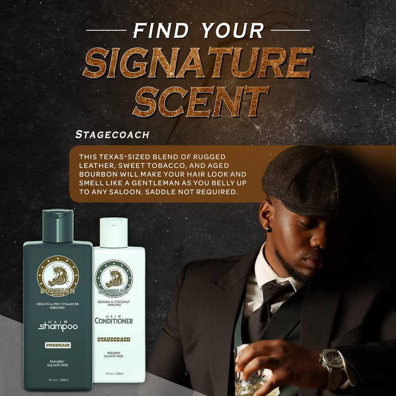 Bossman Hair Shampoo and Conditioner Combo - Hydrating, Strengthening, and Soothing Formula for Men's Hair - Paraben Free & Sulfate Free (Stagecoach)