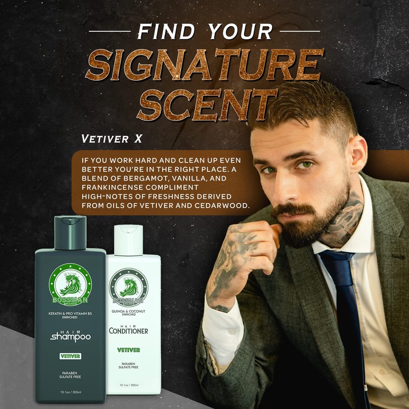 Bossman Hair Shampoo and Conditioner Combo - Hydrating, Strengthening, and Soothing Formula for Men's Hair - Paraben Free & Sulfate Free (Vetiver X)