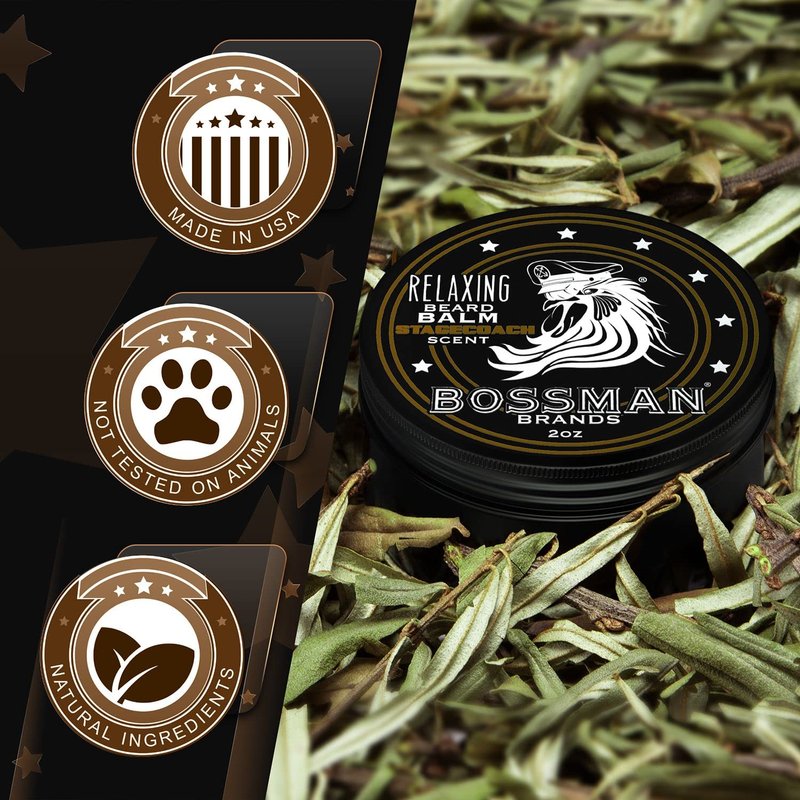 Bossman Relaxing Beard Balm - Beard Tamer, Relaxer, Thickener and Softener Cream - Beard Care Product - Made in USA (Stagecoach Scent)
