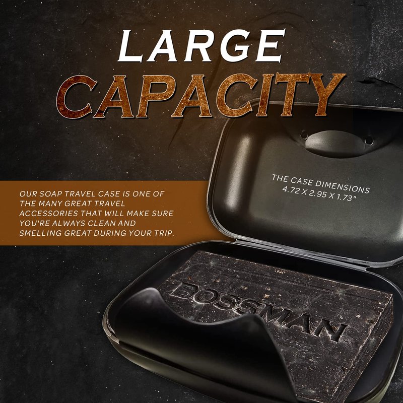 Bossman Travel Soap Container - Bar Soap Holder Box - Travel Soap Saver Case - Men's Traveling Size Toiletries (Black)