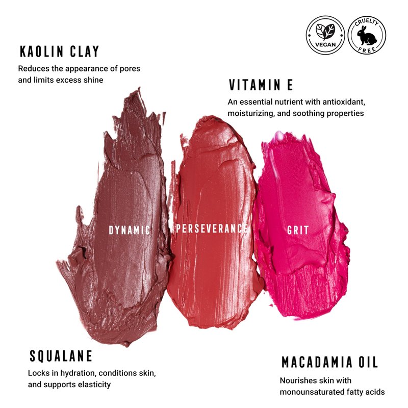 - CONTAINS Kaolin Clay: Reduces the appearance of pores and limits excess shine. Squalane: Locks in hydration, conditions skin, and supports elasticity. Macadamia Oil: Nourishes skin with monounsaturated fatty acids.