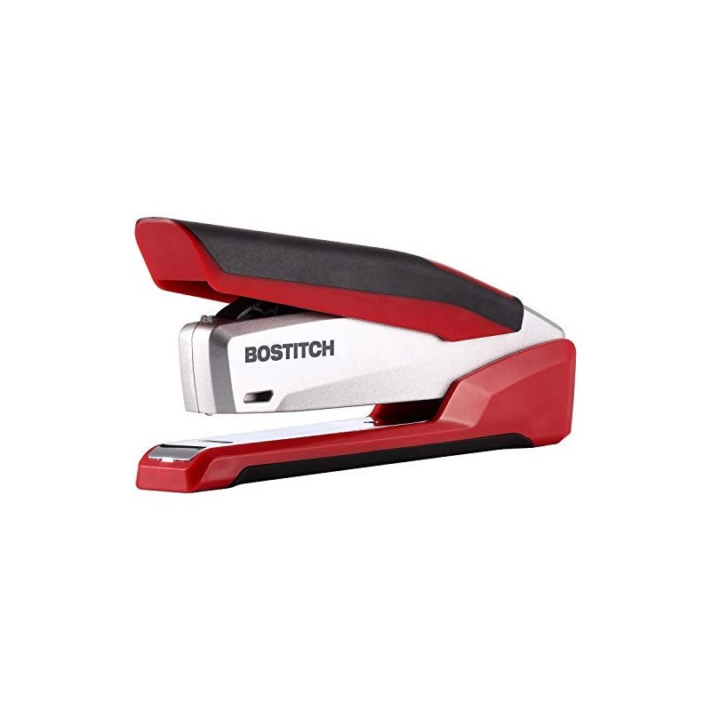Bostitch, 1117, InPower Spring-Powered Premium Desktop Stapler, 28-Sheet Capacity, Red/Silver