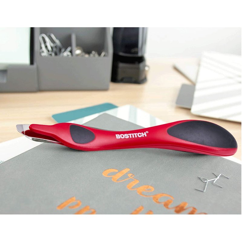 Want to remove staples without tearing your documents?If you work in an office where you constantly have to remove staples, then you're well aware of how challenging of a task it actually is. Tug too hard and you can tear or crease important paperwork. Prying them gently by hand is too time-consuming.But there's no need to go through the hassle of damaging documents or making a mess while removing staples. With the right tool, you can easily lift staples without ruining our papers!Effortlessly and neatly remove staple wires with the BOSTITCH Staples Remover!Featuring a push-style mechanism, our tool can easily lift staples from your documents without tearing them. Simply slide the stainless steel tongue under the staple wire and push. Doing so will quickly and efficiently remove any staple while leaving your paperwork's corners unharmed.No one wants sharp staple wires scattered on the desk or floor. Our tool comes with a staple grabber designed to keep wires at the end of the wand for easier cleanup and disposal. If ever staples do break loose, our accessory also has a magnetic tip that traps and keeps them from falling.Our durable tool makes easy work of even stacks of paper that need to be unstapled. Thanks, to its ergonomically designed rubber handle, you can hold and control the stick comfortably. Use it for hours without straining your hands.Here are more reasons you'll love this staple puller:Each pack has a black, blue, and red staple removerAlso functions as a convenient box openerMade with safe and durable materialsFunctional gift for colleagues and friendsRemove staple wires with ease. Add the BOSTITCH Staples Remover to your cart TODAY!