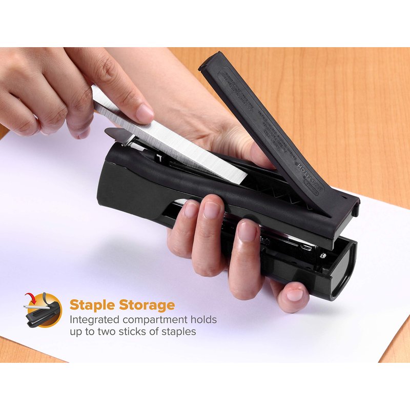 - Built-in pencil sharpener, staple remover, and hidden staple storage