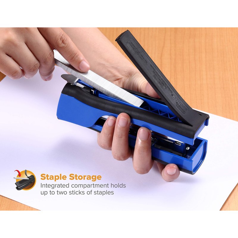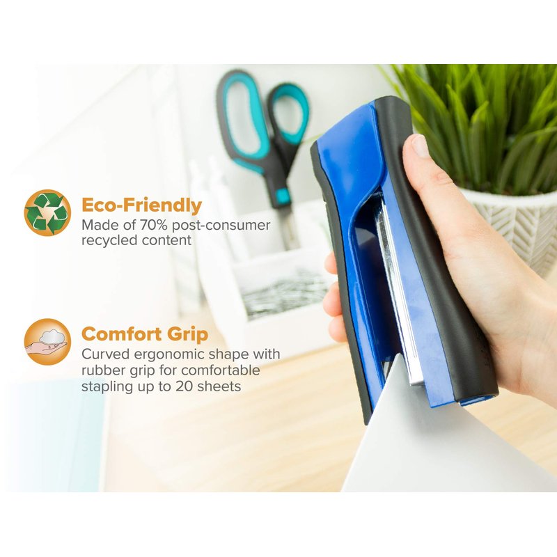 Bostitch Office Dynamo 4 in 1 Standup Stapler, Includes 420 Staples, 20 Sheet Capacity, Integrated Pencil Sharpener, Staple Remover & Staple Storage, Blue