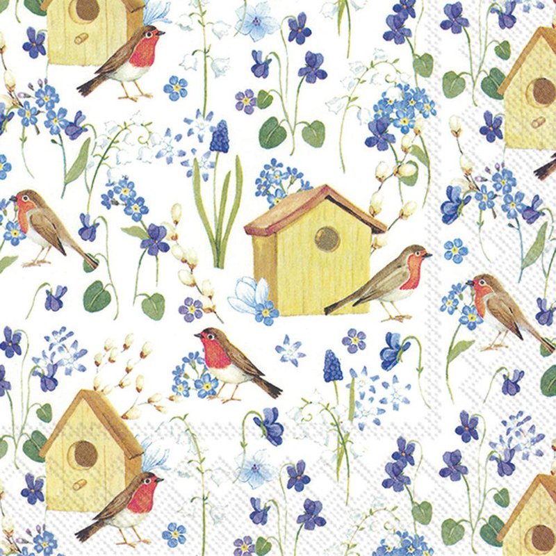 Boston International IHR 3-Ply Paper Napkins, 20-Count Lunch Size, Birdhouse In Spring