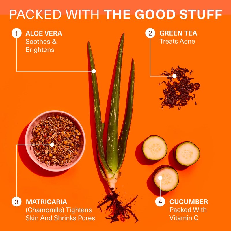 - NOURISH YOUR SKIN WITH OUR CLEAN FORMULA. Our natural facial cleanser with vitamin C is enriched with organic cucumber, green tea, aloe vera, and matricaria, to naturally soothe all natural sensitive skin.