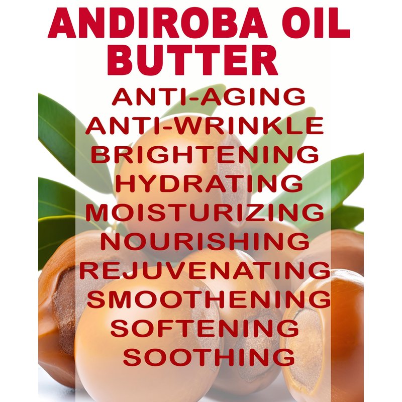 ANDIROBA OIL BUTTER is currently considered to be the best oil for natural, anti-aging skin care products with restorative properties for all skin types, especially for dry or mature aging skin, chapped and cracked skin, balances the moisture in the skin, and leaving skin soft and smooth.Andiroba Oil butter provides intense hydration without clogging pores, making it an excellent choice for various skin types. The butter helps maintain skin's moisture balance, leaving it soft, supple, and nourished.