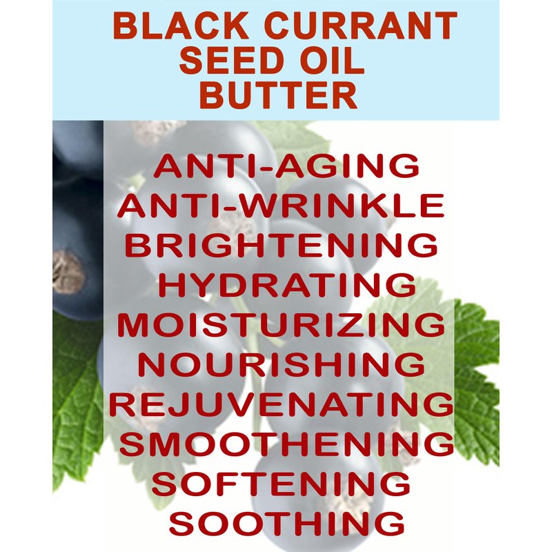 BLACK CURRANT SEED OIL BUTTER is currently considered to be the best oil for natural, anti-aging skin care products with restorative properties for all skin types, especially for dry or mature aging skin, chapped and cracked skin, balances the moisture in the skin, and leaving skin soft and smooth.BLACK CURRANT SEED OIL BUTTER provides intense hydration without clogging pores, making it an excellent choice for various skin types. The butter helps maintain skin's moisture balance, leaving it soft, supple, and nourished.