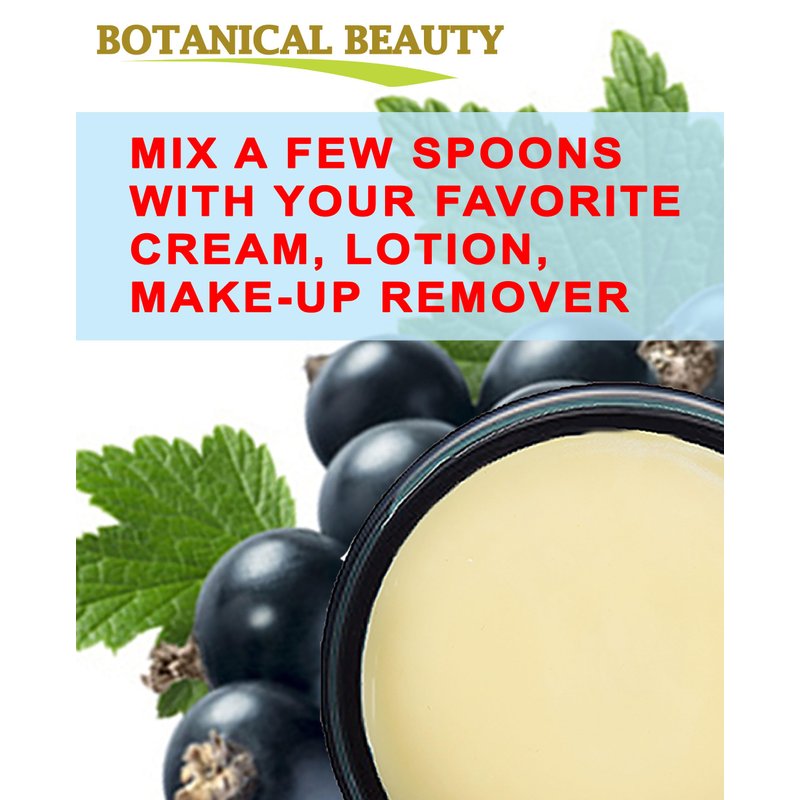 - Botanical Beauty BLACK CURRANT SEED OIL BUTTER is a remarkable and stable source of vitamin E, vitamin B, vitamin C, Omega 3, Omega 6 and Omega 9 Essential Fatty Acids, Palmitic Acid, Stearic Acid, Oleic Acid, Gamma-linolenic Acid. Botanical Beauty BLACK CURRANT SEED OIL BUTTER is 100% PURE RAW BLEND of Ribes nigrum ( Blackcurrant) in Organic Coconut Oil. Ideal light moisturizer for everyday use.