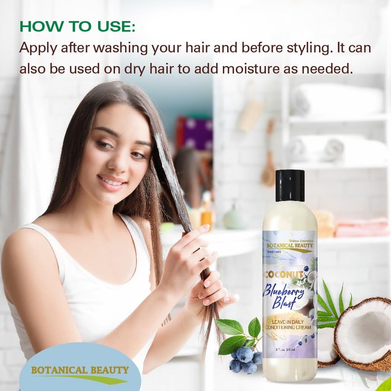 - 【DETANGLING】Botanical Beauty Blueberry Blast Leave-In Daily Conditioning Cream will bring your hair's health back, improving its appearance, preventing damage and breakage, and repairing any previous damage. Detangling your hair has never been easier!