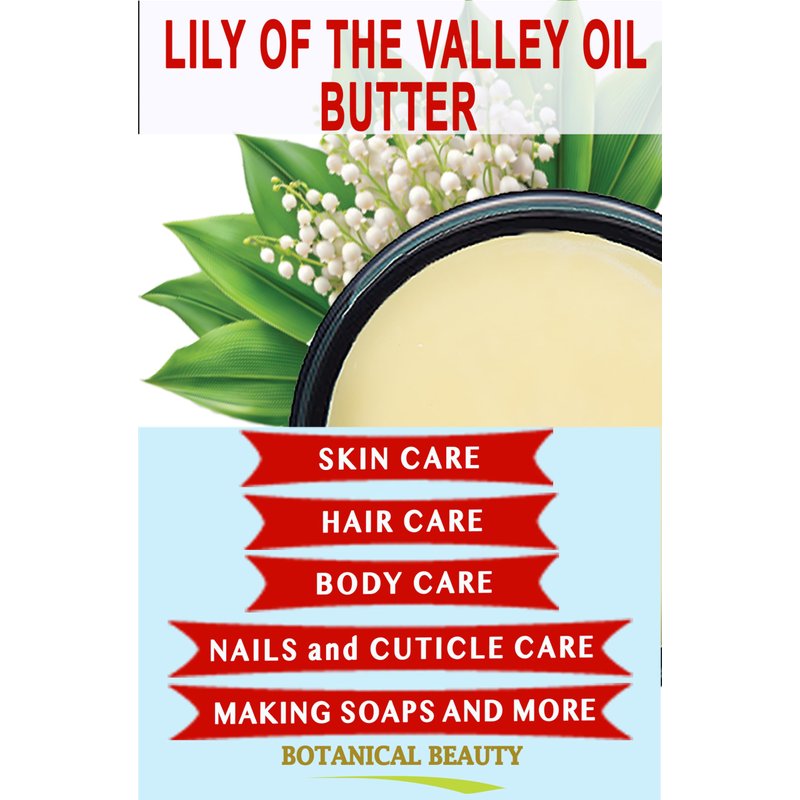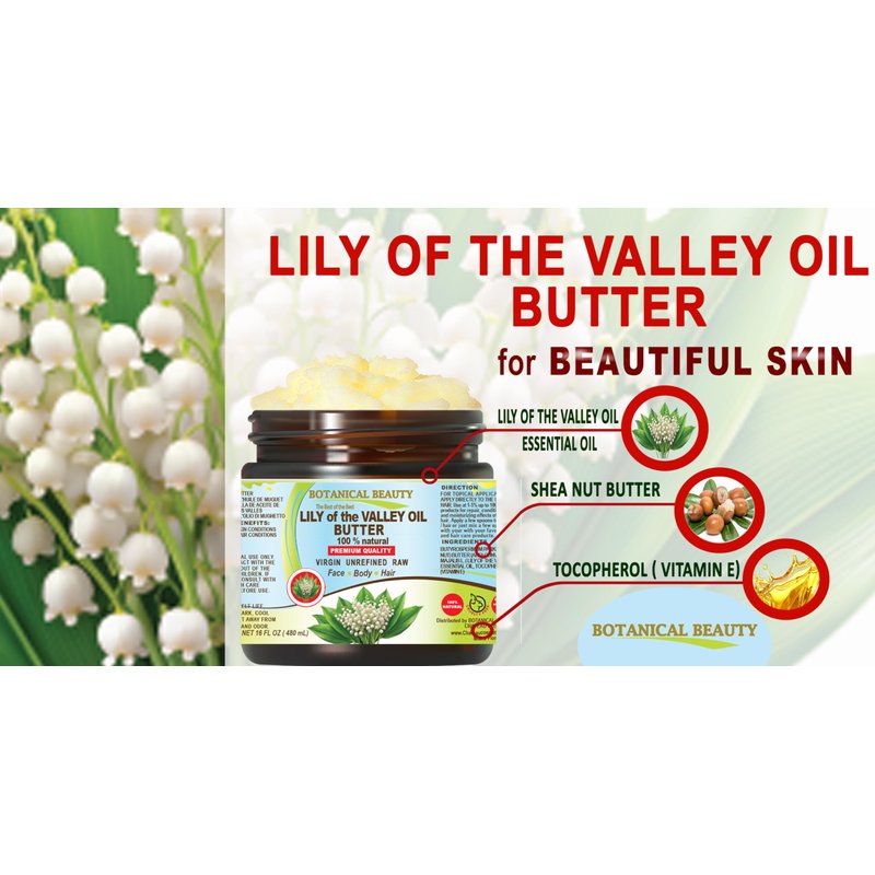 - Botanical Beauty LILY OF THE VALLEY OIL BUTTER is Lily of the Valley Essential Oil (Convallaria majalis L.) infusion in Shea Nut Butter ( Butyrospermum Parkii) 100% Natural RAW cold-pressed virgin unrefined Butter. Botanical Beauty LILY OF THE VALLEY OIL BUTTER is light heavenly aroma of the Lily of the Valley flowers.