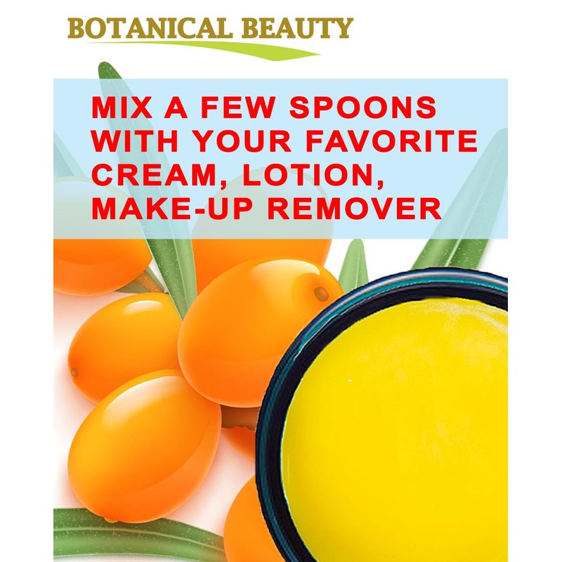 - Botanical Beauty SEA BUCKTHORN OIL BUTTER is deep orange in color. It's non-comedogenic and it won't clog your pores. A Little Goes a Long Way, Absorbs Quickly, Not Greasy, Not tested on Animals, NO PRESERVATIVES, Artificial COLORS or FRAGRANCES.