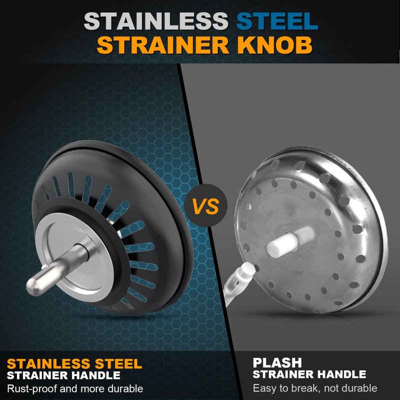 3-1/2-Inch Kitchen Sink Drain Assembly We are committed to provide each customer best product. We hope to provide you the best kitchen sink drain choice and make your life more convenient. Please don’t hesitate to order if you need a good replacement, we ’ll sent you the full refund if there have any problem. Why it will be your good choice? The reasons are as followings: Solid Stainless Steel Construction and polished finishes: This sink drain kit is made of stainless steel with brass nuts which is built to last! It combines reliable performance with a durable design. Constructed from premium stainless steel, more durable and rustproof even submerged under water for months. Polished stainless finish fits in with most contemporary kitchen décor. You won’t find any cheap die-cast parts in this kitchen sink drain kit. 3.5"- 4" opening fits for all standard American kitchen sink: The standard sink drain assembly will fit any U.S standard kitchen sink (3.5"-4" opening). The drain assembly is q uick and easy to install. All parts are detachable. Strainer Doubles As Drain Plug : Super easy to use strainer/stopper that strains debris with one quick push or stops water with one quick pull. Stain Resistant : Super easy to clean. Just remove the basket to empty. No need plumbers. Package also included more parts for helping you to install easily, such as: - Removable basket strainer (doubles as drain plug) - 304 stainless steel construction - Thicker rubber washer (ensure the performance of water sealing ) - Paper washer - Lock nut
