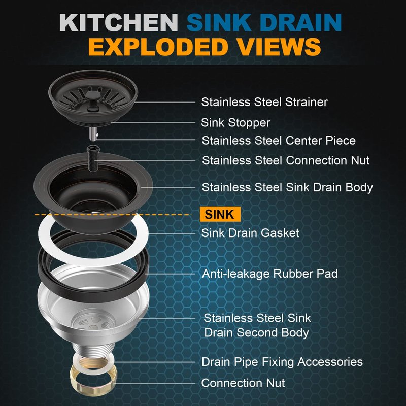 - STAINLESS STEEL SINK DRAIN: This kitchen sink drain is made of durable and premium stainless steel material which can built to last, polished finish more smooth, it will not rust when submerged under water for months