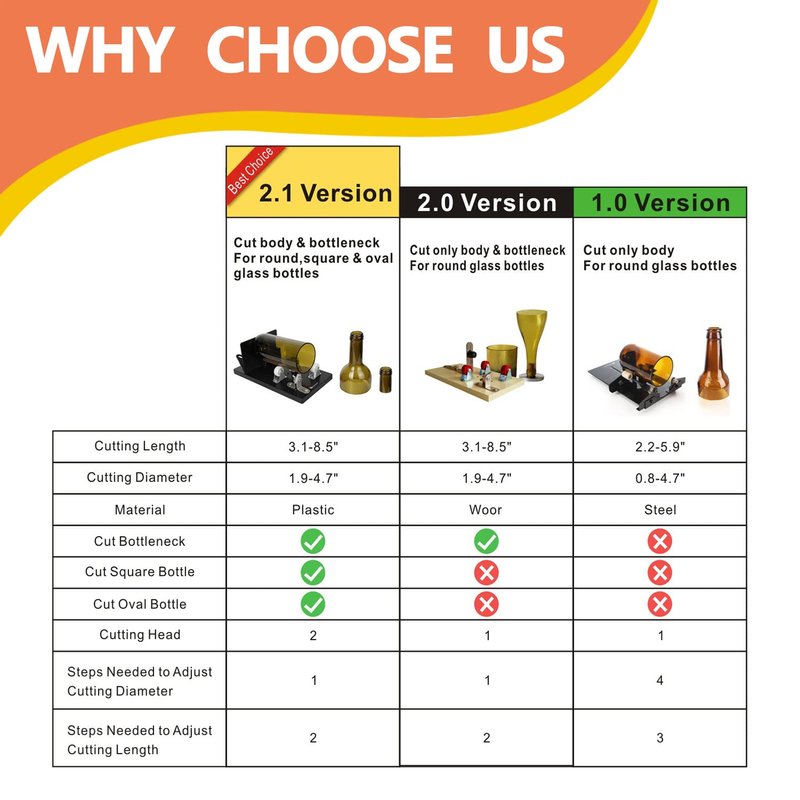 - 【Suitable With Most Glass Bottle】 Compared to most of the other glass cutters which can only cut round bottles, Genround 2.1 glass bottle cutter is also suitable for square and oval glass bottles and jar, such as Vodka, Whisky, Martell, Hennessy, Brandy, Tapered, Champagne, Perrier, Pellegrino, Patron, Growler, Grand Marnier, Firestone and so much more.