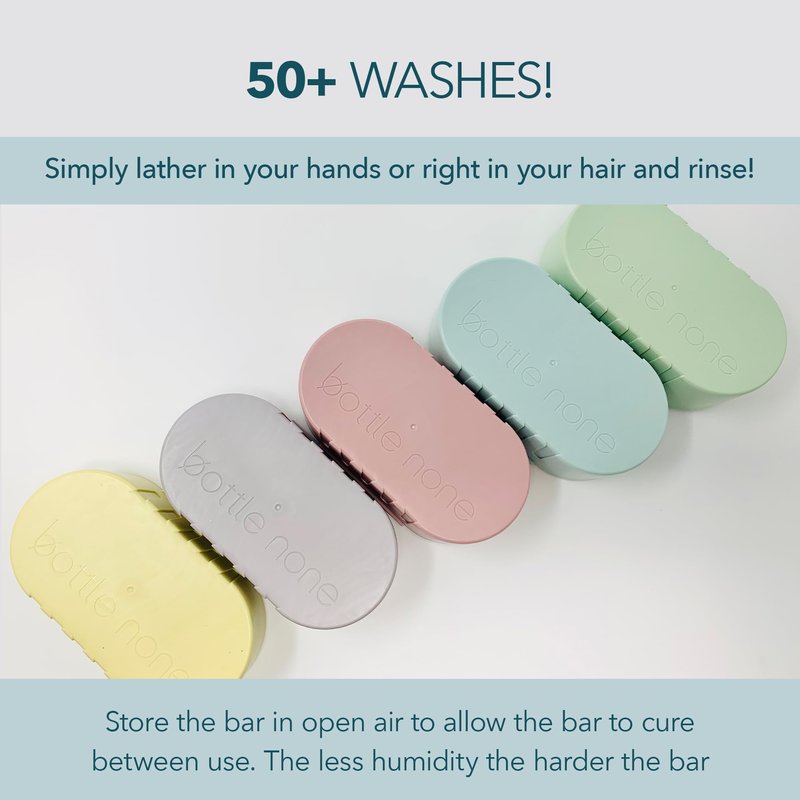 - 🧼 50+ WASHES - Simply lather the shampoo in your hands or right in your hair and rinse! Get the conditioner bar warm under hot water and massage throughout the hair. Pull the bar down the strands avoiding the roots and focusing on the ends. Store the bar in open air to allow the bar to cure between use. The less humidity the harder the bar will get and the longer it will last.