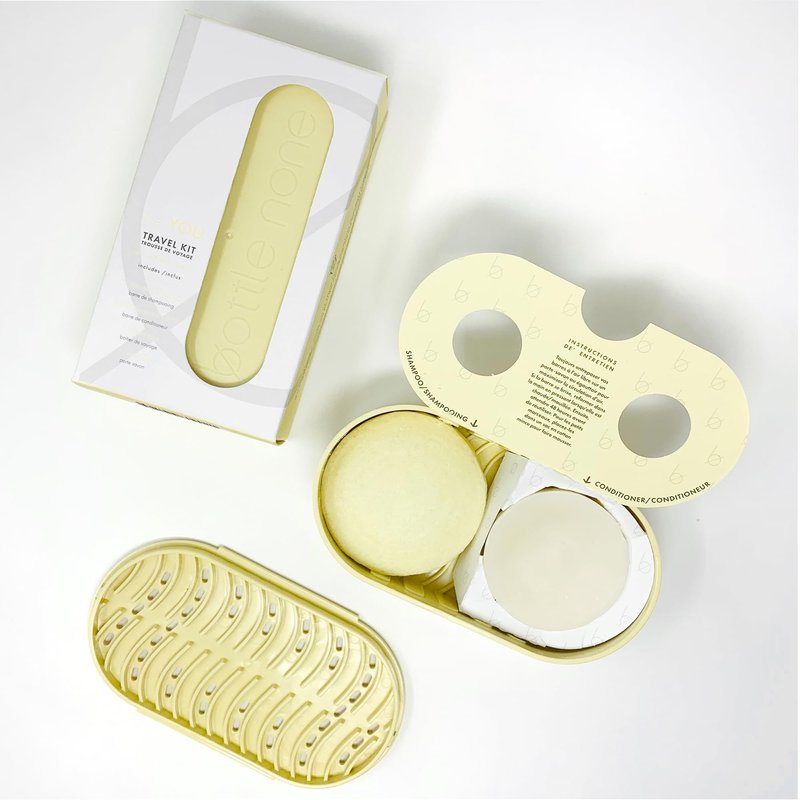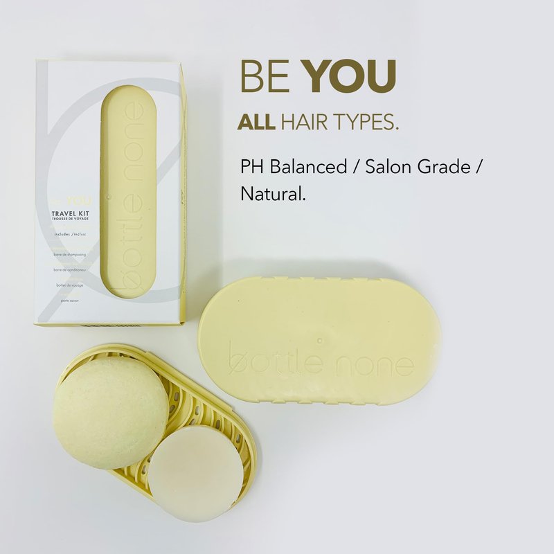 BOTTLE NONE | be YOU Travel Set with Shampoo and Conditioner Bars for All Hair Types and Travel Soap Dish | PH Balanced / Salon Grade / Natural | 50+ Washes
