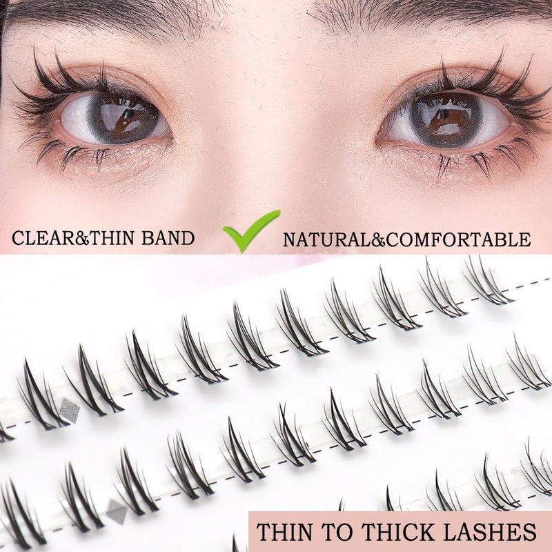 - 【Clear Lash Band】Unlike visible black lash band, each of our bottom lash clusters is with transparent band.They will look more naturally after applying on your eyes,hardly noticeable on eyes.