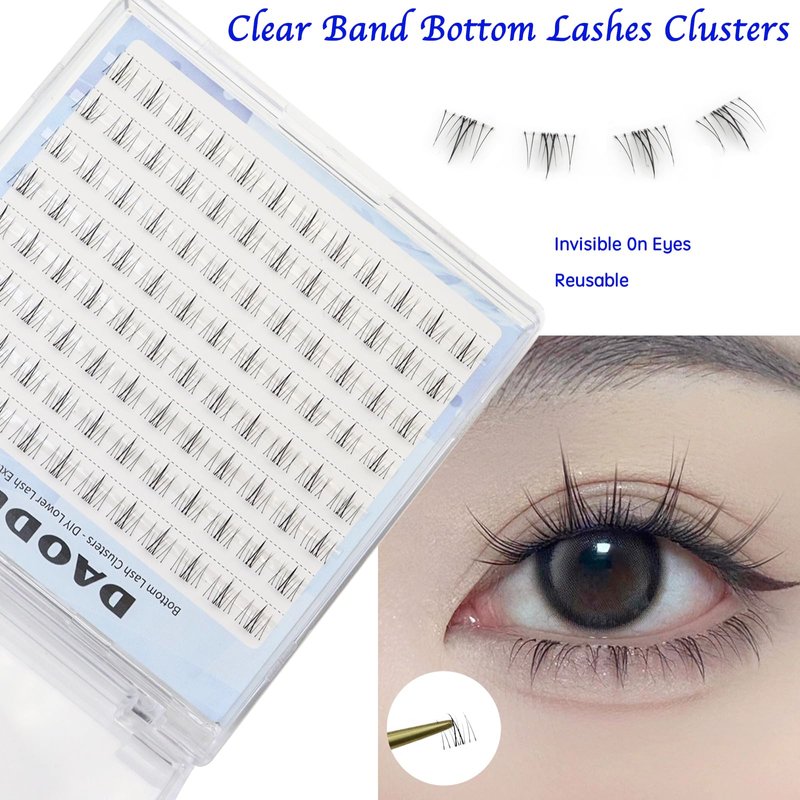 Bottom Lash Clusters DIY Eyelash Extension DAODER 96pcs Lower Individual Lashes Clusters Wispy Natural Look Clear Band Lash Extension For Bottom Eyelashes 6mm