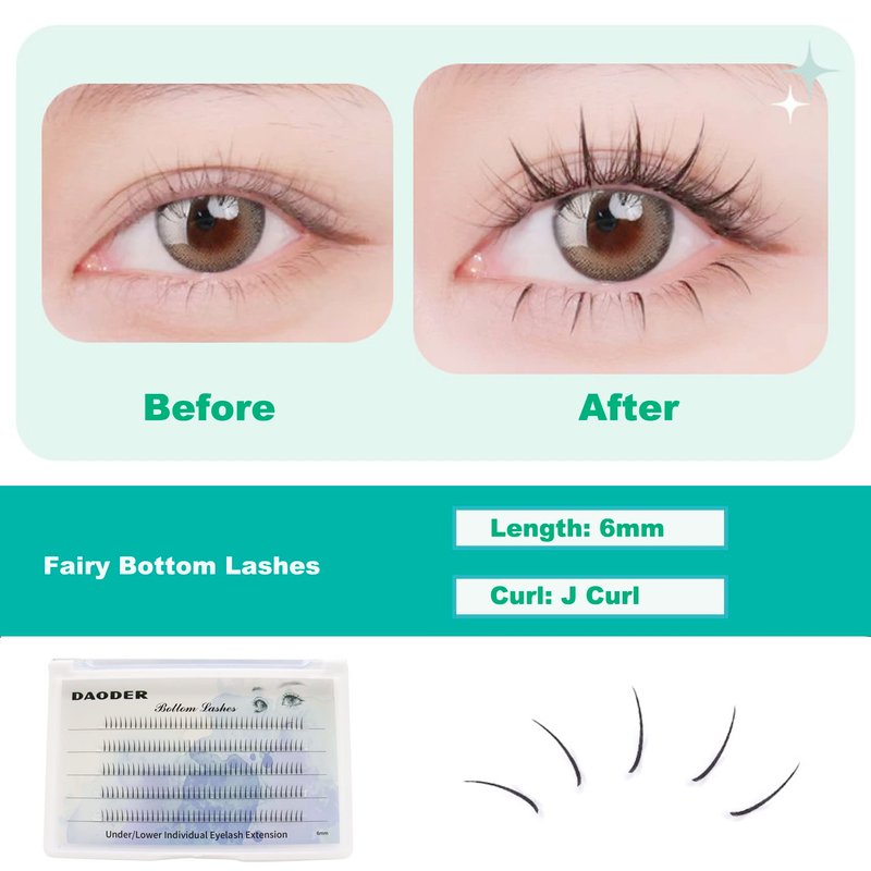 Bottom Lash Extension Kit 200pcs Lower Individual Lashes With Lash Bond and Applicator Tool 6mm Under Eye Lashes Natural Look DIY Eyelash Extension by DAODER(Fairy Bottom Lashes)