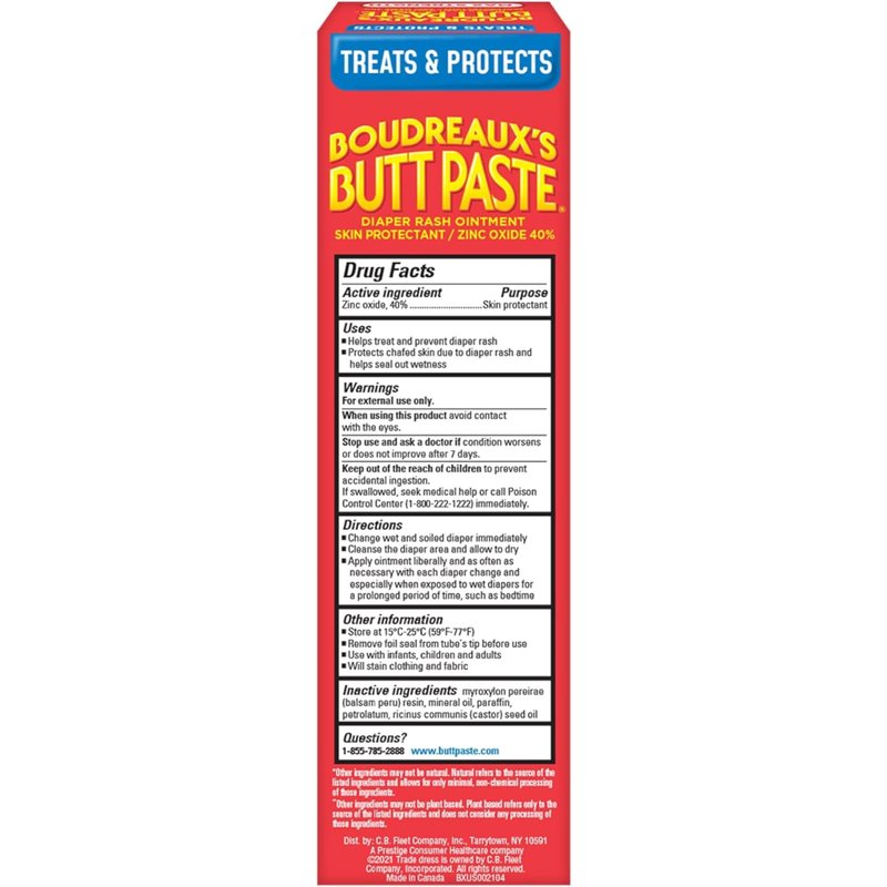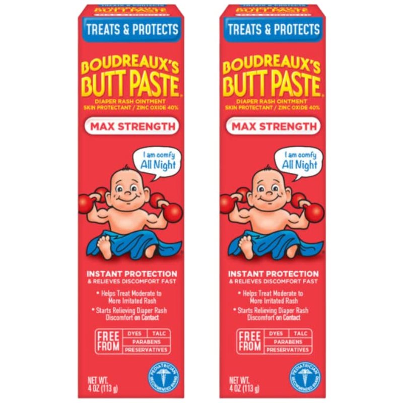 Boudreaux's Butt Paste Diaper Rash Ointment - Maximum Strength - Contains 40% Zinc Oxide - Paraben and Preservative-Free - 4oz (2 Pack)