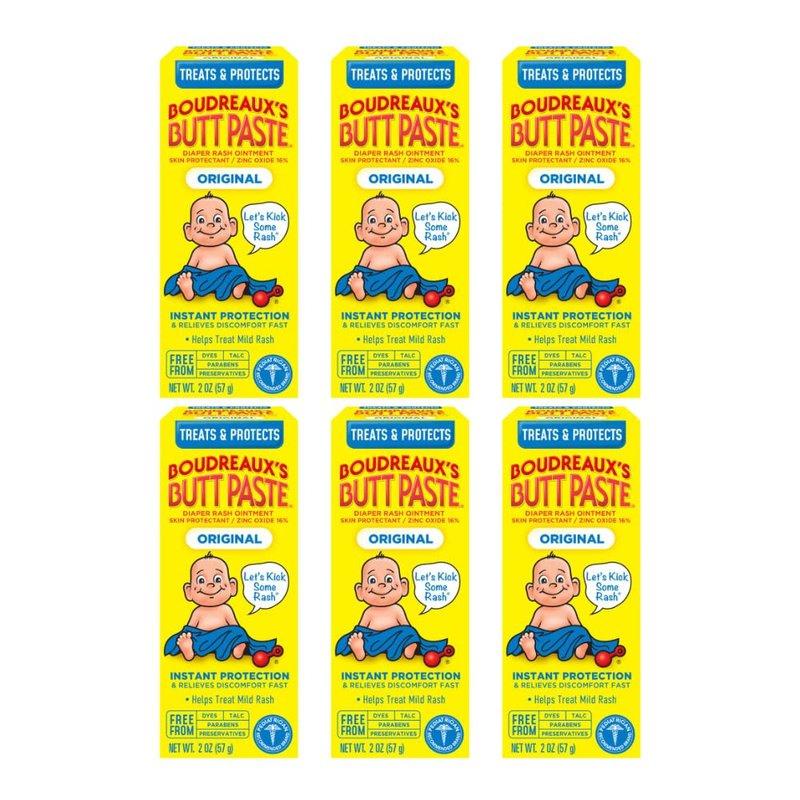Boudreaux's Butt Paste Original Diaper Rash Cream, Ointment for Baby, 2 oz Tube (Pack of 6)